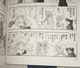 Fate/hollow ataraxiaコミックアンソロジー (2) DNAメディアコミックス 〈一迅社〉★★★★★ (5点満点)その他のお勧めとしては下記の5本など。 「Byebye,my baby」(綾野貴一さん) 子ギル&三枝さん主役。ギルの最後の台詞に震えた! ギル様カッコ(・∀・)イイ!! 「第3の犠牲者」(あきもと大さん) カレンにこの役をやらせるとは……作者さん、GJだぜっd('-'*) 「貧乳コンプレックス」(病さん) リズセラコンビいいなぁ〜。絶対セラはツンデレキャラだよ(笑 「お仕置きライダーさん」(ハラオさん) ライダーはすっかりいじめられっ子キャラですねぇ〜。クールなのにおびえるライダー萌え(ぉ 「衛宮士郎殺人事件」(石田あきらさん) 絵上手いですね(´ー`)ノ 犯人丸わかりでしたが、探偵モノっぽい雰囲気が良かったです。 というわけで、今までで一番良かったアンソロだけにお気に入りの漫画もいつもより多いですね。実は他にもお薦めしたい漫画があったのですが、 さすがにこれ以上は多すぎだろうと、5本に絞らせてもらいました。 それにしても、DNAメディアコミックスは凄いですね…(;^ω^) 1巻もかなり面白いと思ったんですが、正直2巻はそれ以上でした。 今までホロゥのアンソロは計7冊出ていますが、 どれか一冊買うというのなら、私は今回のDNA2巻をお勧めするでしょう。 (もしも2冊買うというのならDNAの1巻もお勧め) 今までのホロンアンソロジー漫画レビューへ※「カレンに花を咲かせましょう」より、コミカルなカレン。